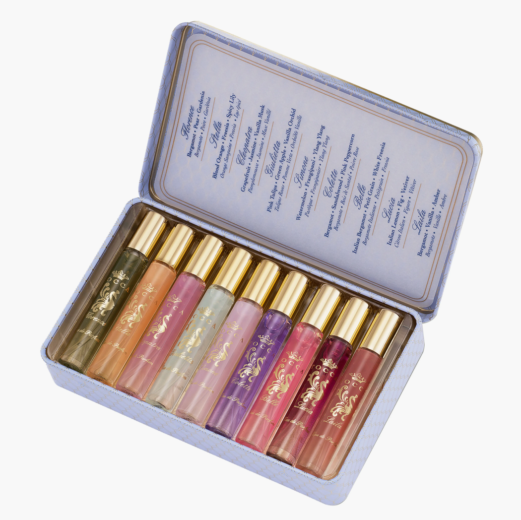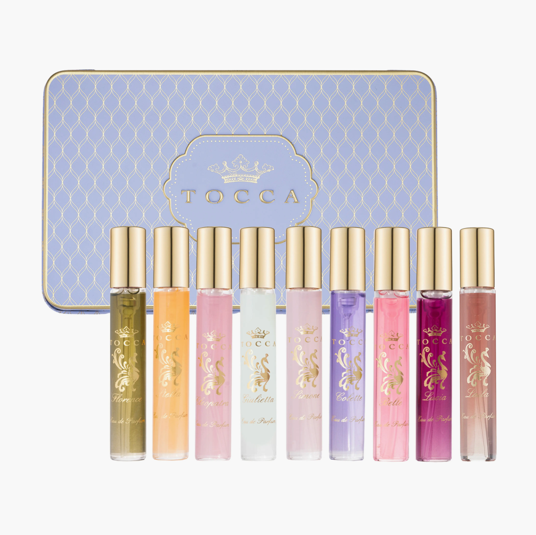 A discovery set of eight fragrances from TOCCA in a collectible, travel-friendly tin.